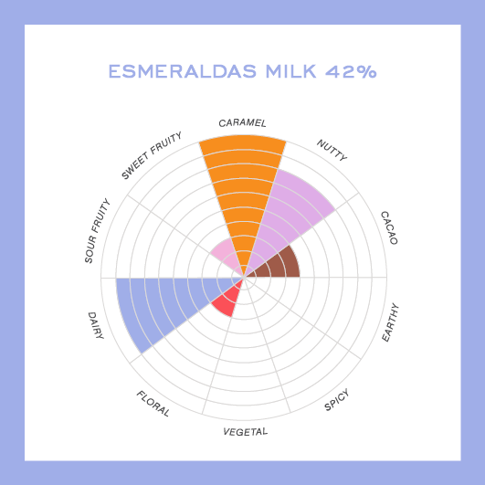 Smagsmæssigt har chokoladen noter af karamel.