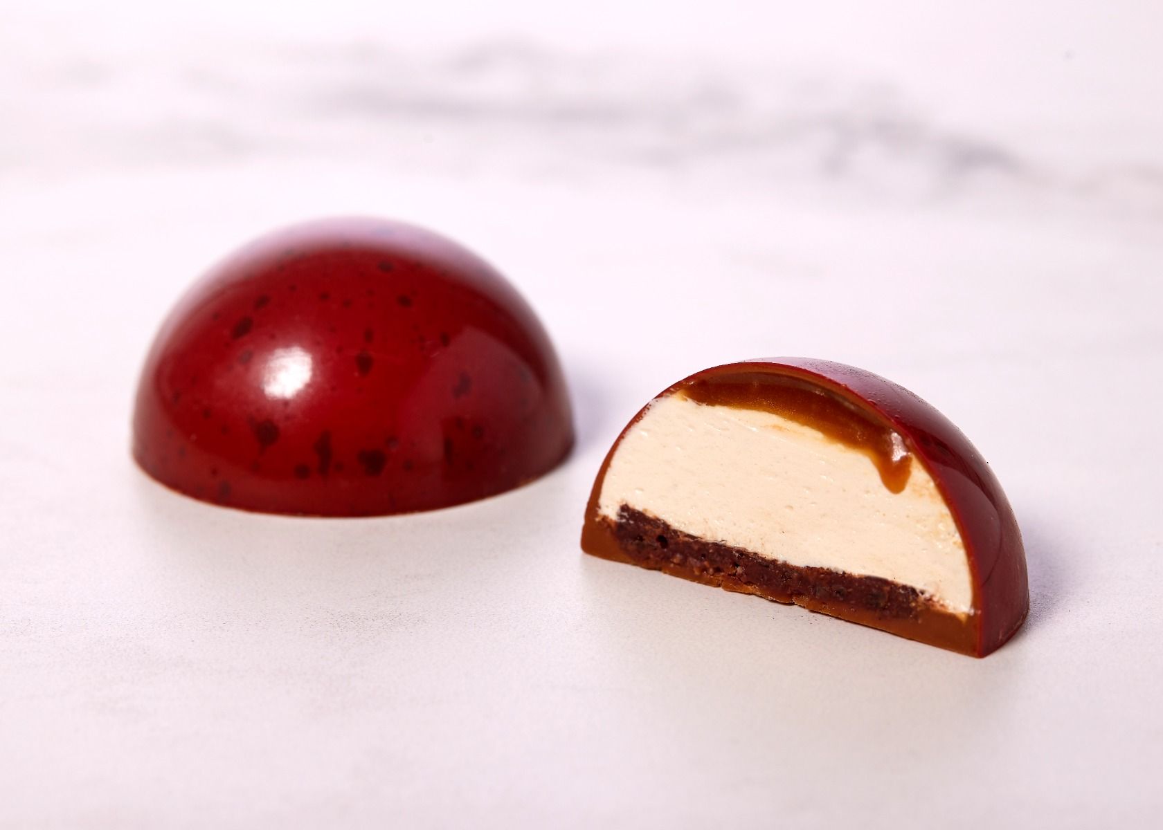 - Karamel skum smagt til med en smule salt, og med et lækkert flydende indlæg af flødekaramel, stående på en bund af karamelliserede pekannødder, støbt med vores egen karamelliserede hvide chokolade fra Original Beans Yuna Edel Weiss 37%