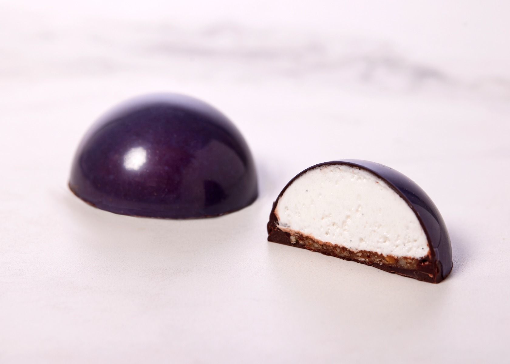 - Solbær skum, syrlig og let sød smag af friske solbær med et lag i toppen af intens solbær paté de fruit. omhyllet af Original Beans Esmeraldas Dark 65% mørk chokolade, stående på en blød og smagfuld mandel marcipanbund