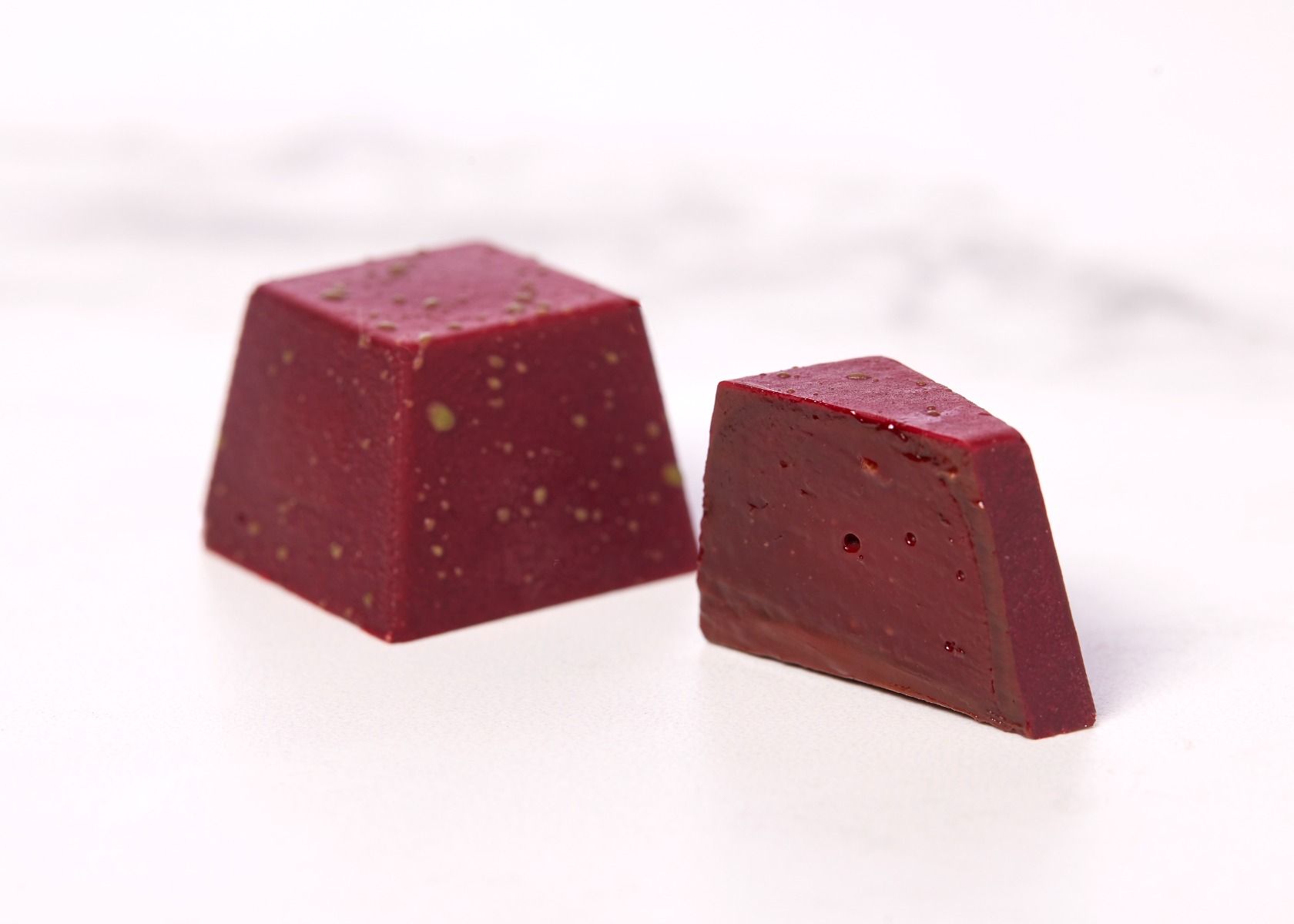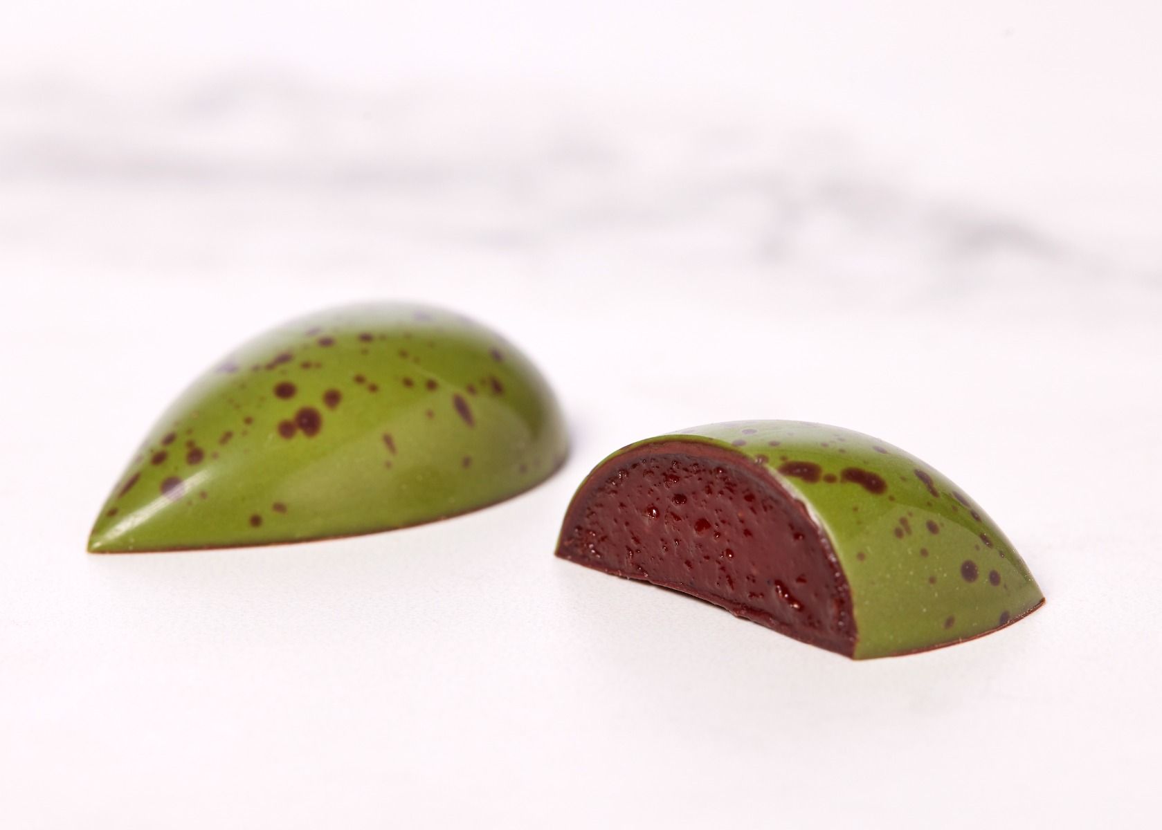 - Hindbær ganache: en lækker hindbærganache, der er indhyllet i en intens skal af 75% Piura Porcelana mørk chokolade. En vidunderlig fusion af frugtagtig syrlighed og dyb chokoladesmag.