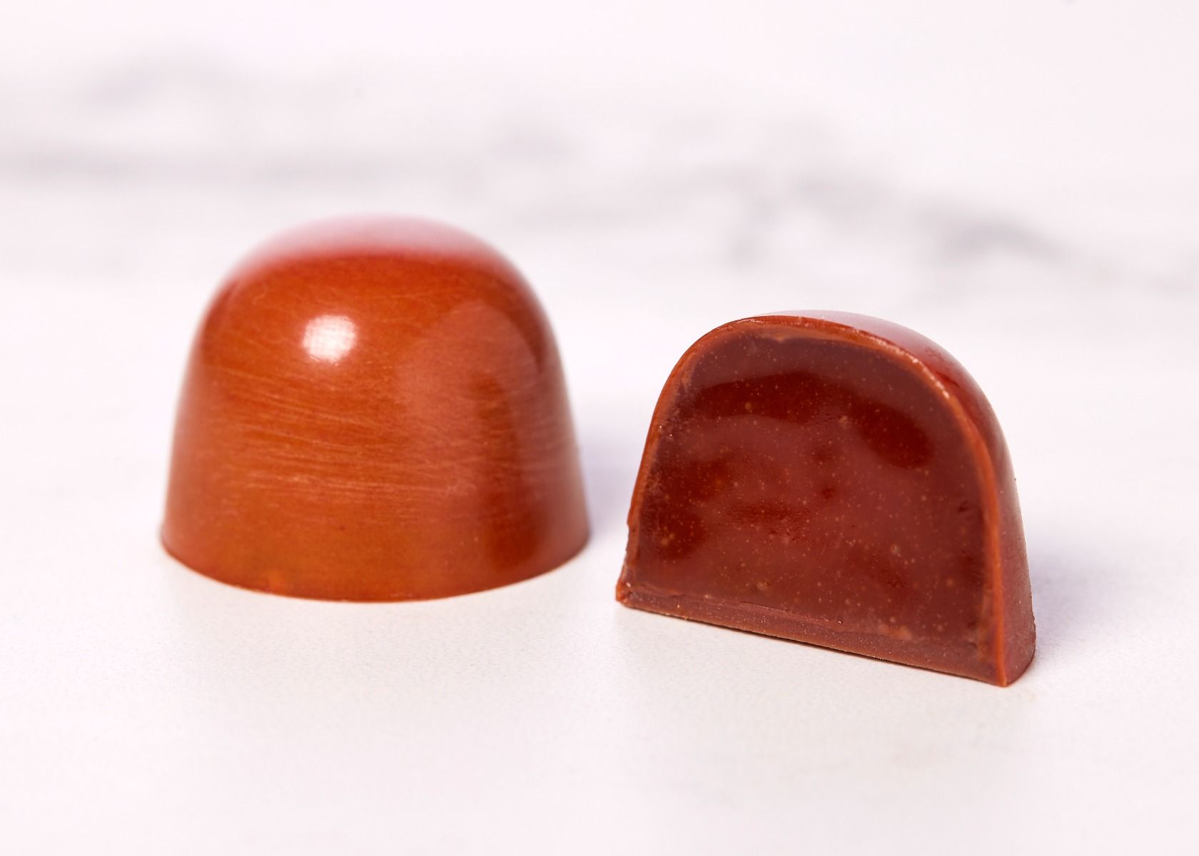 - Appelsinkaramel: Forkæl dig selv med en fyldt chokolade lavet af Esmeralda 42% mælkechokolade, der indeholder en intens og blød appelsinkaramel. Den friske citrusaroma harmonerer perfekt med den cremede chokolade for en lækker og forfriskende smagsoplevelse.