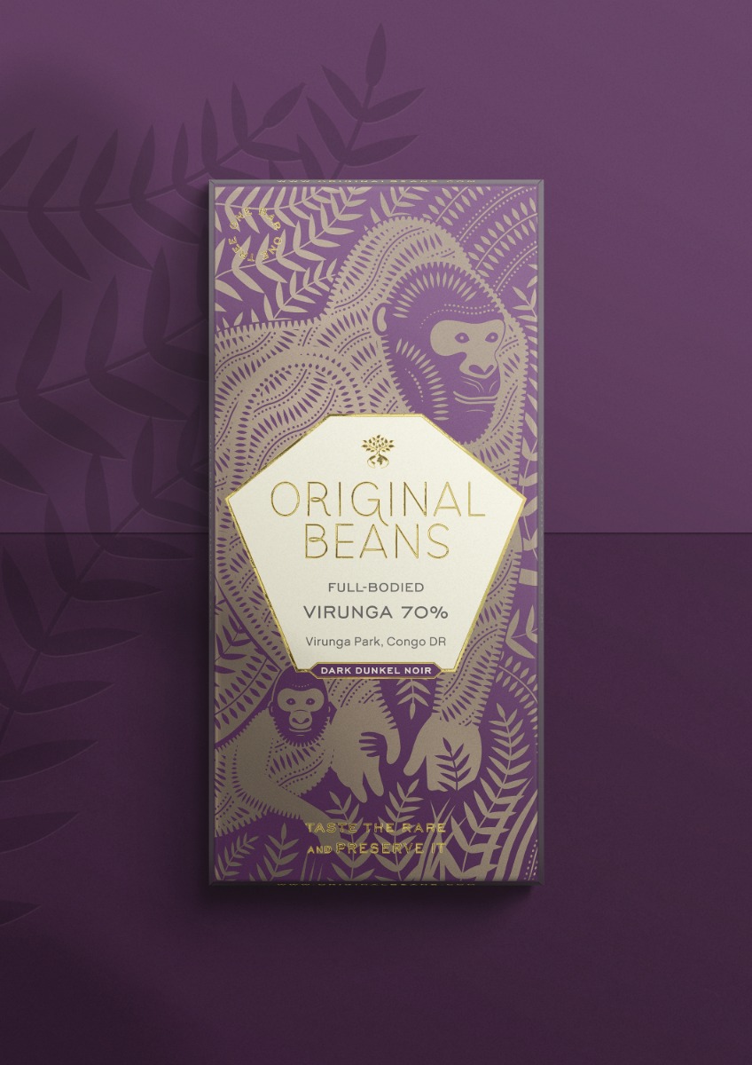 STØT arbejdet i Virunga National Park ved at købe Original Beans Cru Virunga 70%. Vi forhandler chokoladen i 3 størrelser: 12g bar, 70g bar samt 2000g pose. Vi benytter desuden denne chokolade i mange af vores fyldte chokolader, flødeboller, kager og desserter.